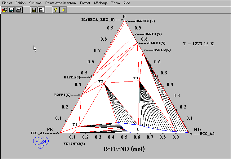 Visualisation du diagramme optimisé du système ternaire B-Fe-Nd